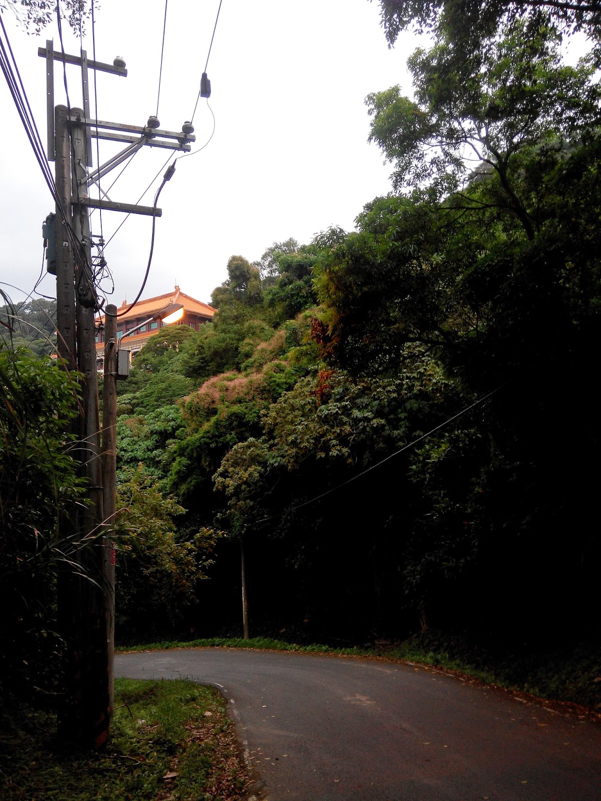 路雖不長,但上坡陡急,要一口氣騎上去,還是有點難度。不過,如果把呼吸節奏調整好,不太急燥,應該不難。從萬壽路二段進來,都是下坡,直到過了福員國小,才開始上坡,而且,開始後就没停止,一路上到最高點。為了喘口氣,我特地在忠恕道院前停車拍照,没想到,停下來後,再啟動卻像洩了氣的皮球~有點漏氣,重新上馬才慢慢的騎上去。這忠恕道院,宏偉壯觀是一貫道的道院,我没仔細研究這個道院,並不清楚它的來歷。不過,試著從側門騎到大殿,卻被電動鐵門攔下,只好悻悻然下來,不過也好,因為上坡非常陡。
