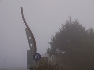 開車前往武嶺的路上,沿途經過翠峰、鳶峰、太魯閣國家公園牌樓、合歡山登山入口處,最後到得武嶺。整個旅程,雨勢未曾停歇,加上濃霧,使得原本壯麗的風景,變得驚險萬分。儘管車子大燈及霧燈全開了,視線仍然不好。我只能伸長脖子,睜大眼睛,緊握向盤,戰戰兢兢的開車,以免發生危險。霧裡,偶儞透出微弱如螢光般的閃爍車燈,才知道前方有自行車騎士。說真的,這時候騎車是危險。但是,騎士的心是熱的。