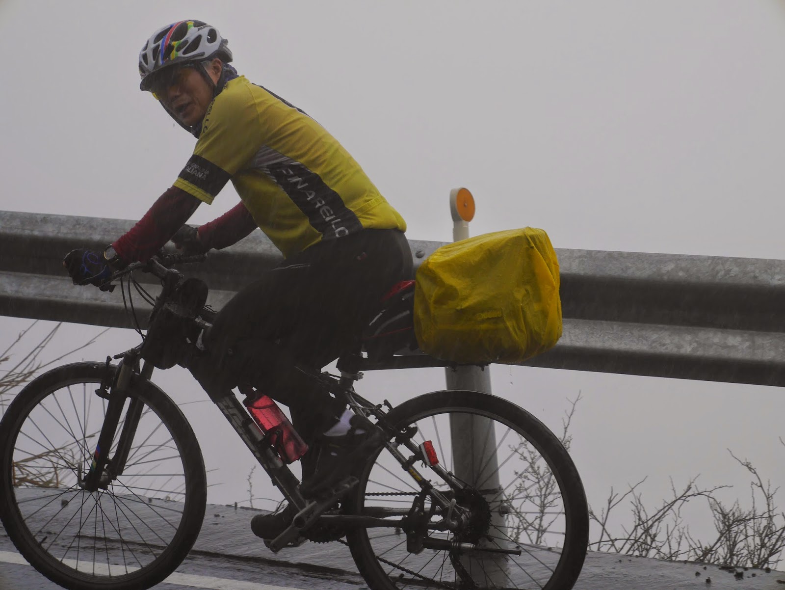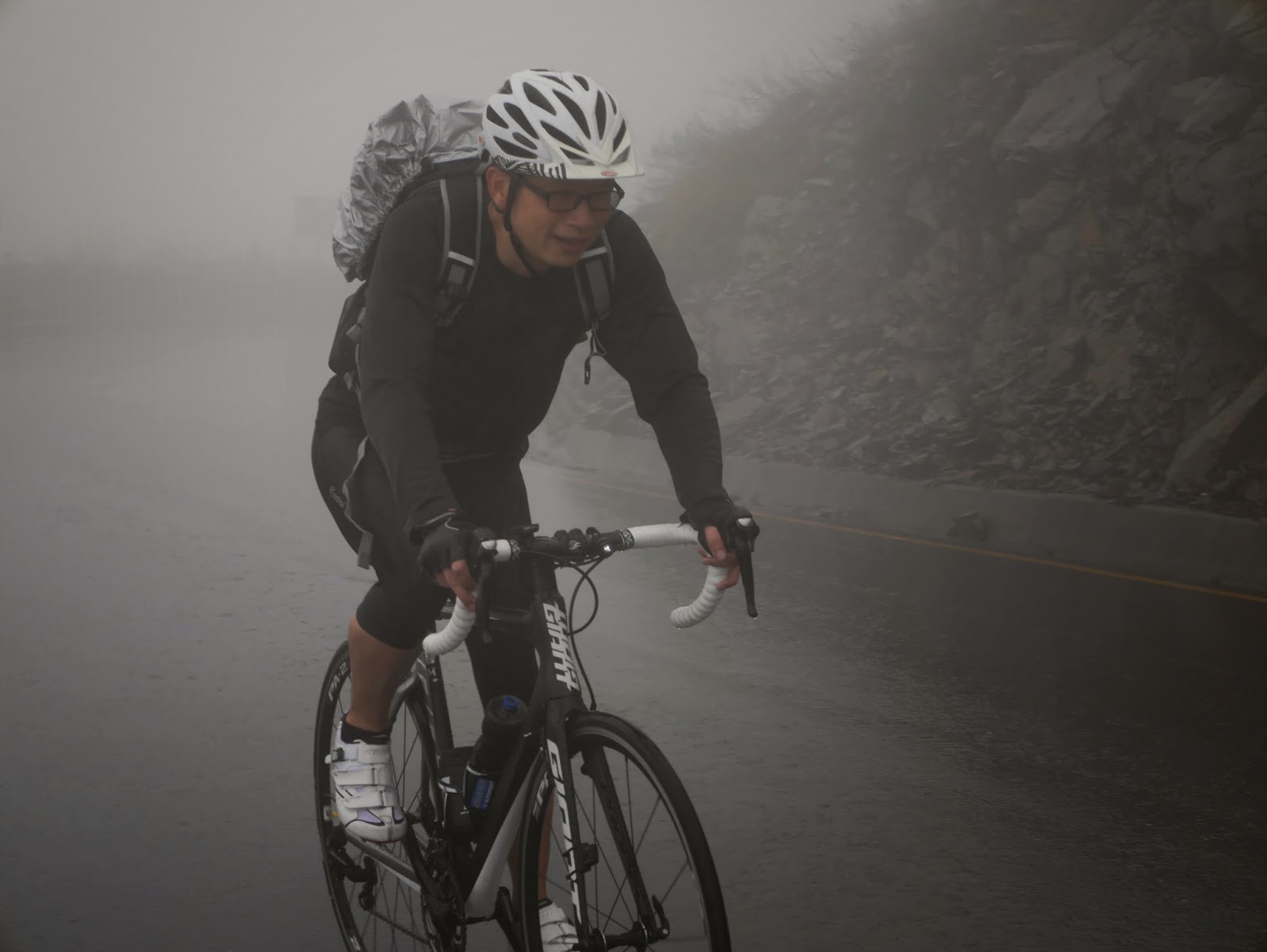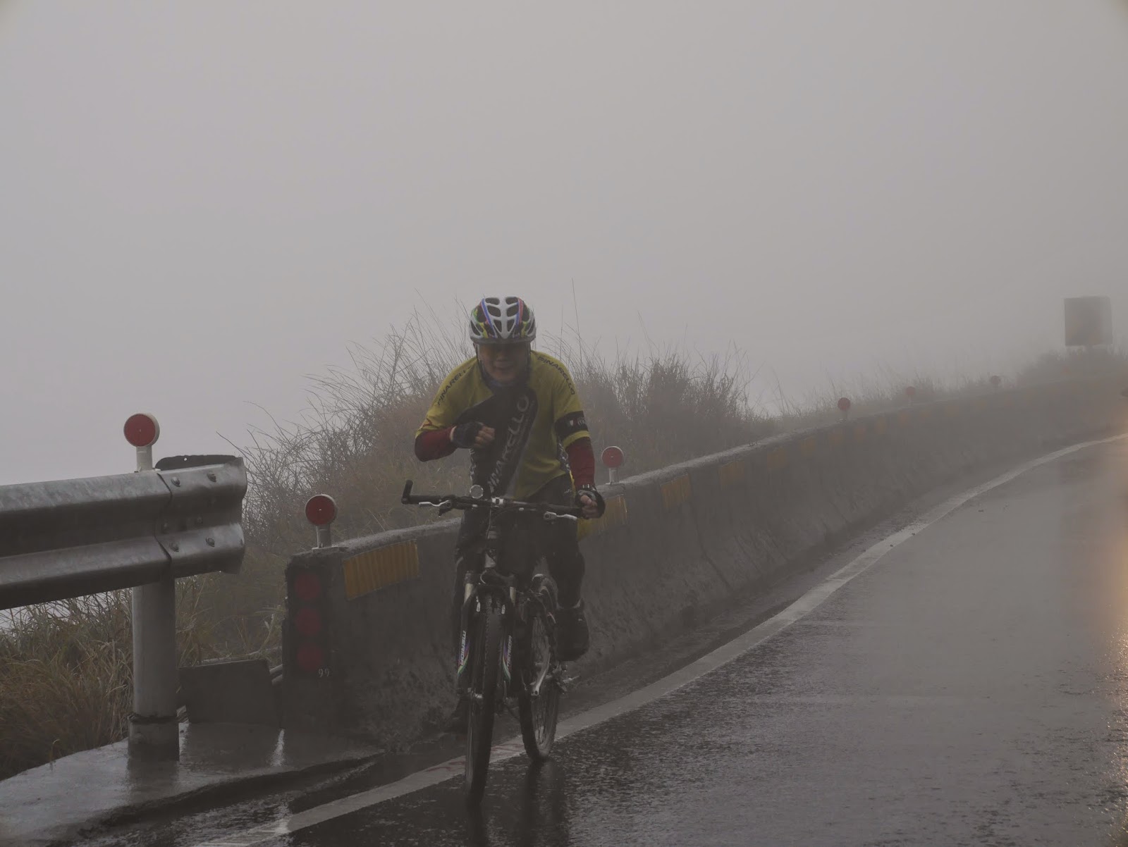 在雨霧中,騎車其實是危險的。尤其在高山上,不但能見度低,而且路又滑,稍有閃失都可能發生不可挽回的意外。倘若還有高山症,這趟旅程就是用生命來騎的。如此偉大的壯舉,值得傳誦與讚揚。
