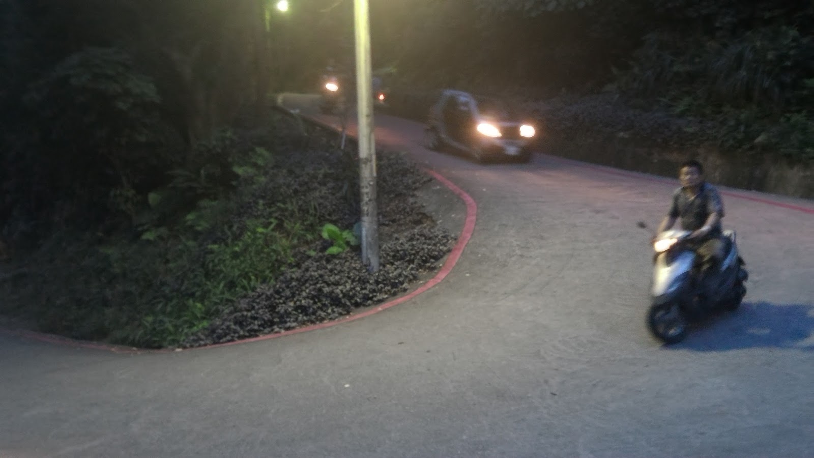 | 有二個這樣的彎,很危險,我下馬牽車 |