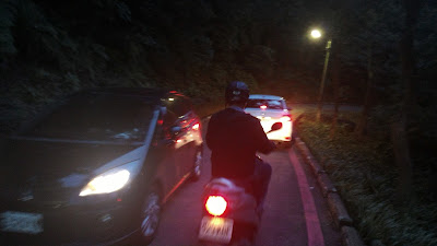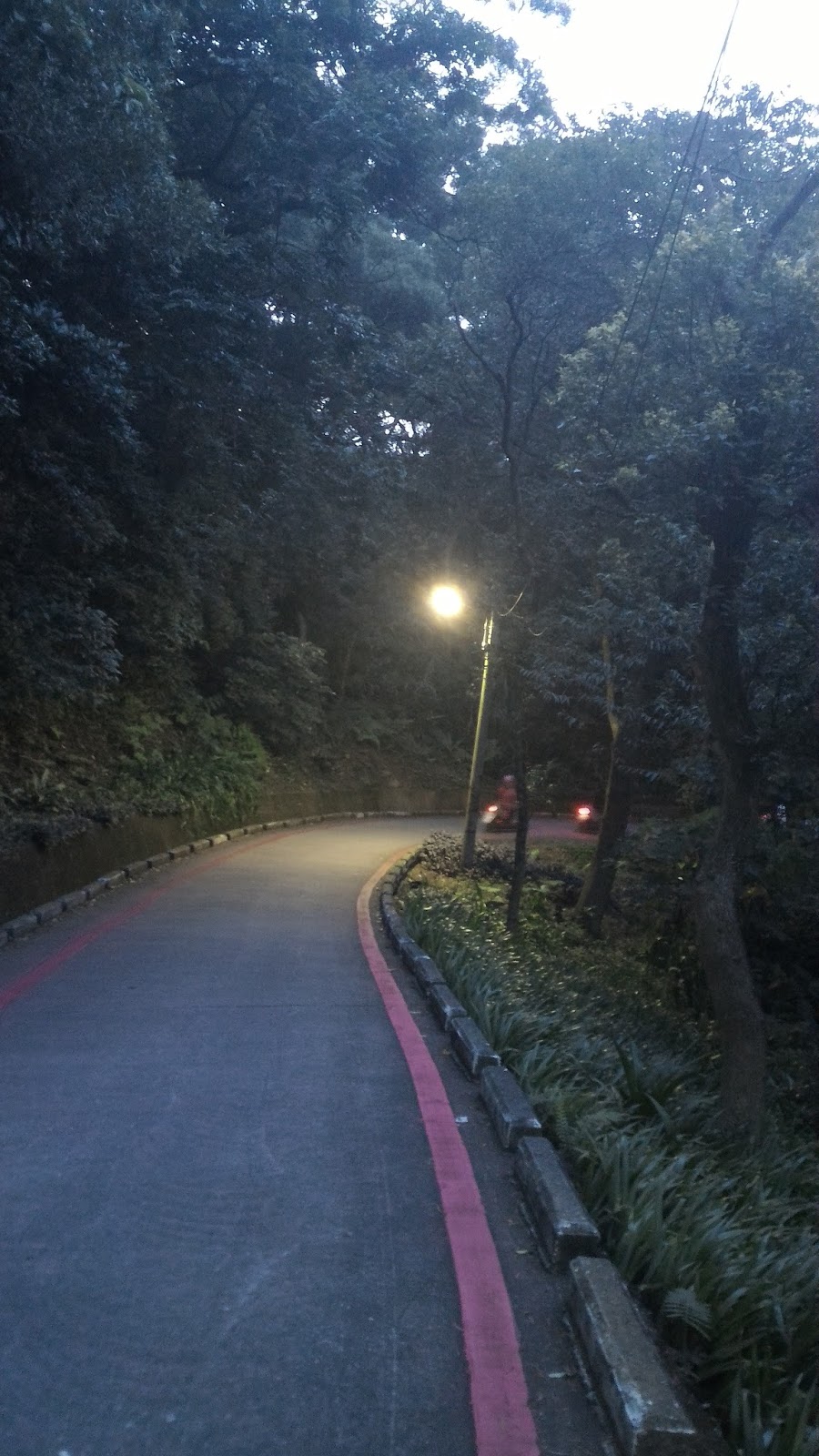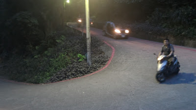 自從2月初,第一次騎明志科技大學到南亞工業區的南泰路後,就對這條路有深刻又美好的印象。因為,馬路又平又寬還有髪夾彎,不但可練習長坡騎乘;而且空氣也不會太差,同時又可俯看新莊及泰山市區,真是一舉數得。不過,每條路線,我總是騎久了就想探險,找點刺激的來玩。所以,今天騎到山頂並没有順著原路掉頭,而是從"山頂公園"回來。
