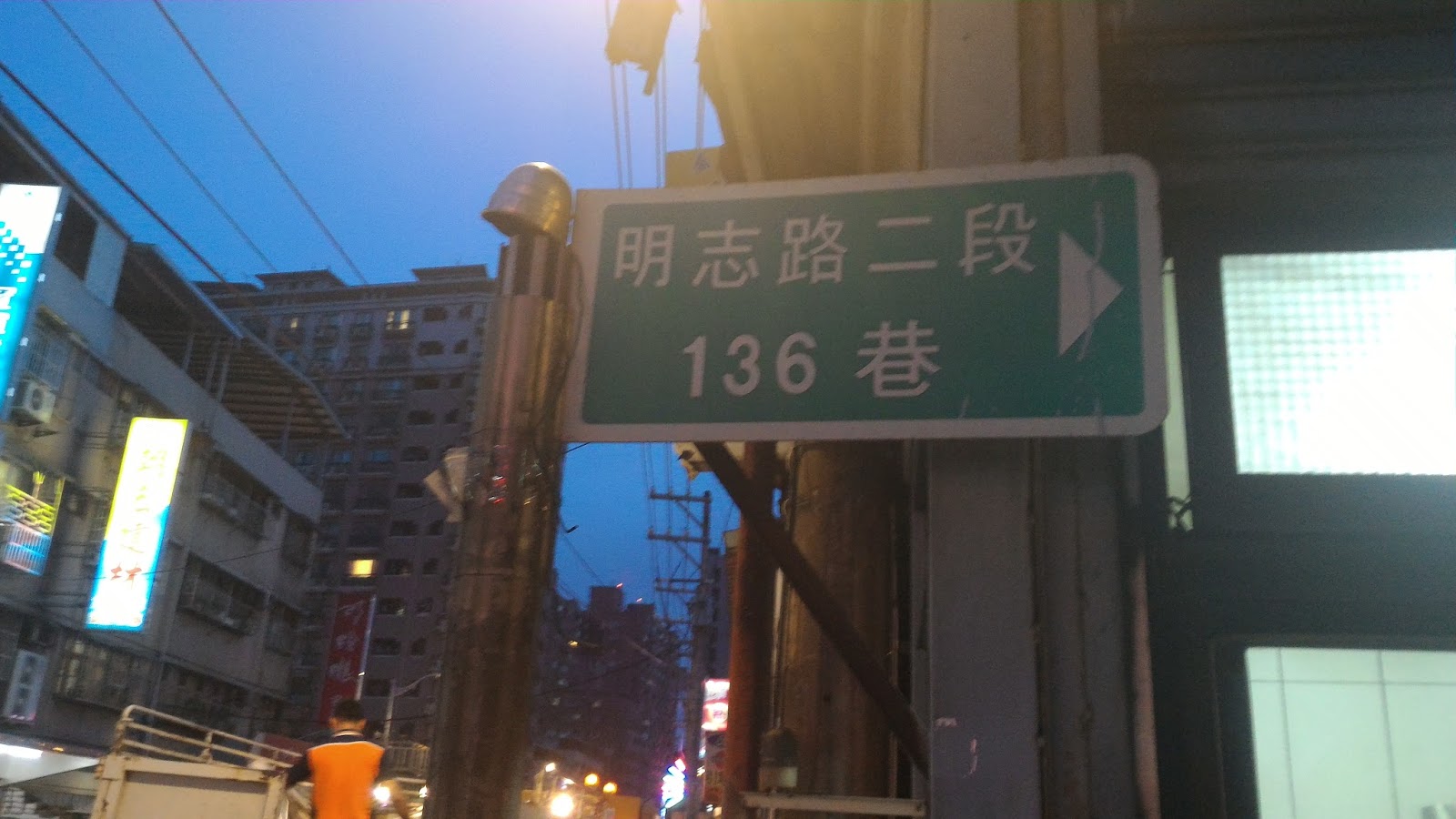 從南泰路的終點右轉有一條通往泰山區山頂公園的產業道路,可以下通黎明路至泰林路二段,也可以到明志路二段136巷。自南泰路右轉後,就一路下坡,會先經過山頂廟的入口處,再往可以右接土地公廟,左轉黎明路,直行明志二段136巷。在往明志路的入口及另一端上山的入口都有限制汽車進入的路障,可是都是虛設的(對台灣人來說),只要鑽得過去,同胞們絕不會放棄的。真是永不服輸的精神!哈哈!