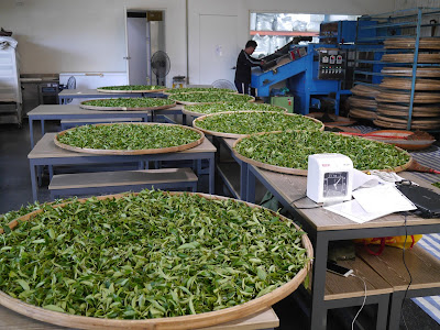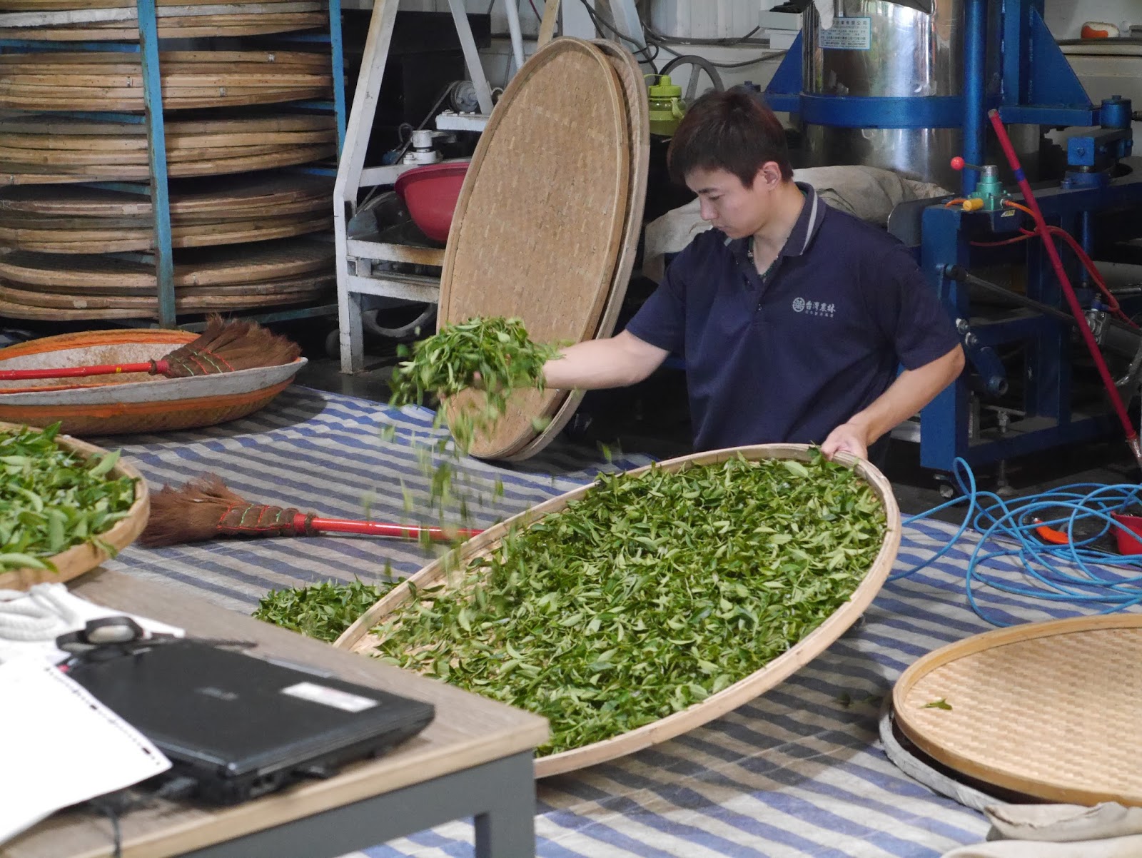 2、製茶過程可分:採青(茶)、手工披散(讓茶葉的熱度平均分散)、委凋(主要功能為軟化茶綠)、發酵、炒茶(青)、揉茶、烘乾、包裝、販售。