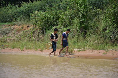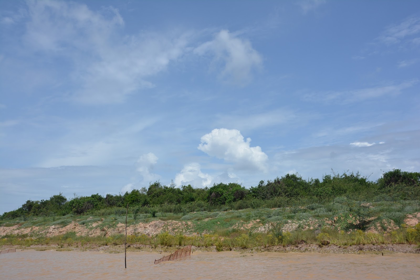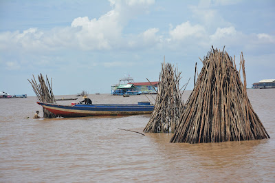 河岸兩側,常常有樹枝綁著塑膠袋,遠遠看去以為是垃圾。其實是用來標示河岸與水紋的標誌,用來提醒來往船隻,注意航道,避免擱淺,造成意外。有時,我在想:難道没有更好的方法可以改善這種簡陋的標示方法嗎?後來,再想想,也許這是最好的方法,因為,雨量的大小是他們没辦法預測與控制的,而且水位每次都不一樣,如何做固定的標示呢?所以,順著天意,遵循著季節的變化,靠天吃飯,在吳哥窟或許是最好的生活方式吧!