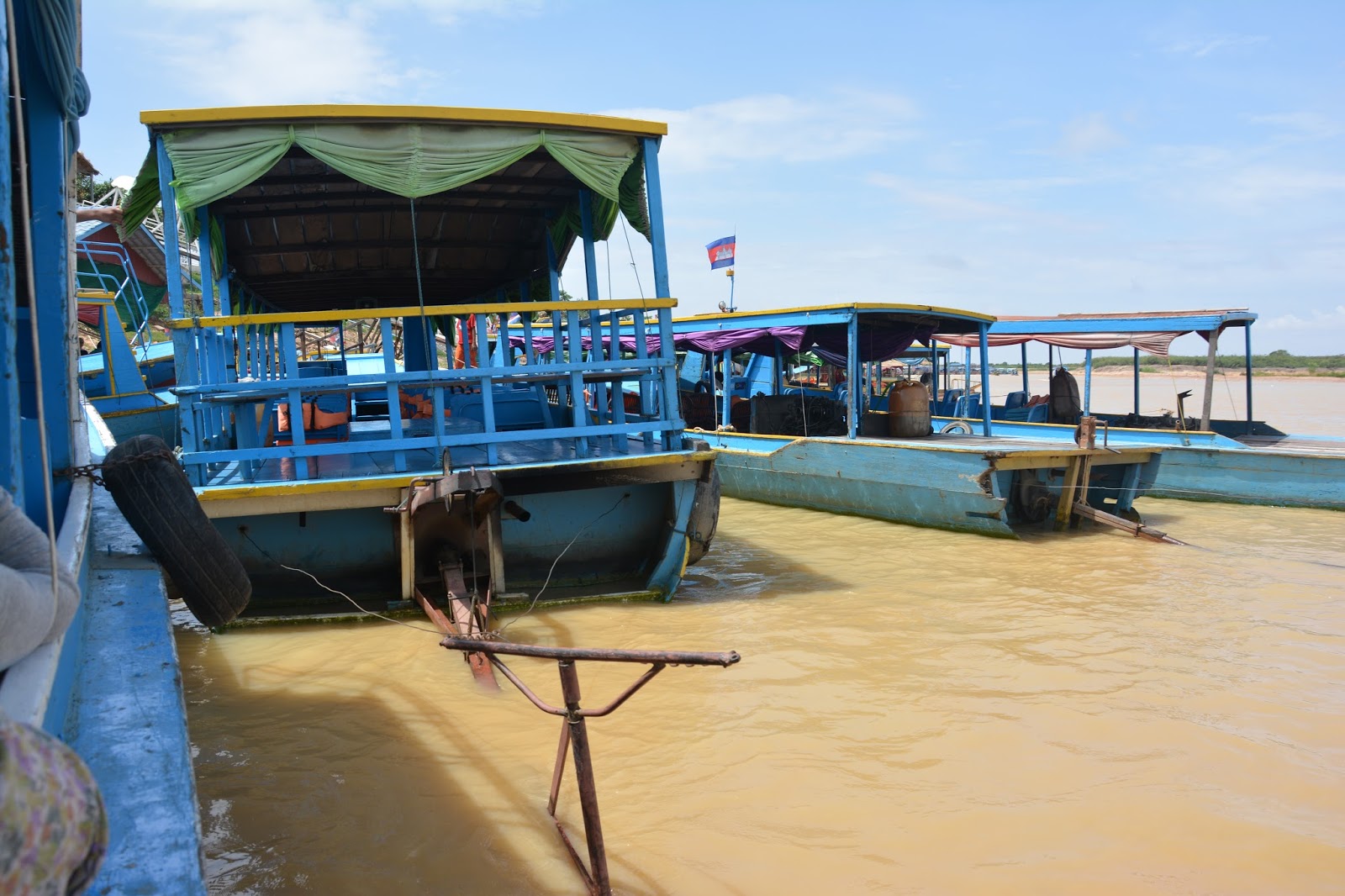 | 水上商店掛有柬埔寨及韓國旗,顯示南韓在柬埔寨的影響力 |
