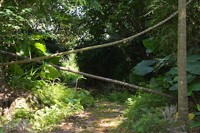 | 兩棵倒下的檳榔樹阻擋了去路 |