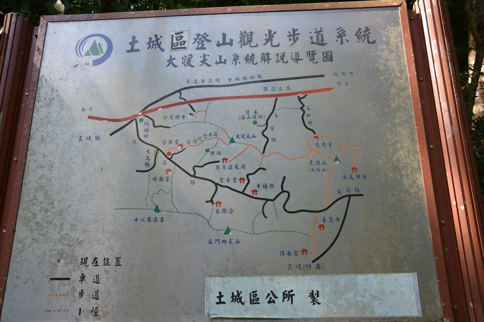 這善息寺剛好位於新北市公車接駁處的上方,很容易認得。從公車接駁處往左側走,是進入承天禪寺的路途中最陡的上坡,上得坡之後,左側有一元茗茶休閒店。騎累了,可以在此休息,點一杯咖啡或茗茶,再加一碗茶油麪線,吃飽喝足,再繼續前行。其實,過了一元茗茶休閒店,再往下都是下坡了。沿途會經過桐花公園、登山步道及桐花鄉咖啡店,也可以歇歇腳。如果喜歡烹飪,店家提供許多有關烹飪的回頭書,每本才50元,可以仔細的挑選,運氣好的話還可以挑到不一樣的書。我就挑了一本精裝的歐洲世界遺產,算是對我今天沮喪心情的彌補吧!快到承天禪寺時有一個超大髪夾彎及幾乎垂直的下坡,號稱"好漢坡"!最好是下來牽車比較安全。過了這坡,左轉是承天禪寺,直行就往金城路了,抵達金城路再左轉騎到盡頭,又回到中央路了。就這樣,騎完一條不是很愉快的旅程,我心中感覺有像是走了一趟淡淡哀愁的"文化苦旅"!